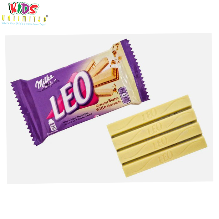 MILKA LEO is a light and crisp wafer coated with good white chocolate from the Alpine country and filled with cream confectioner.