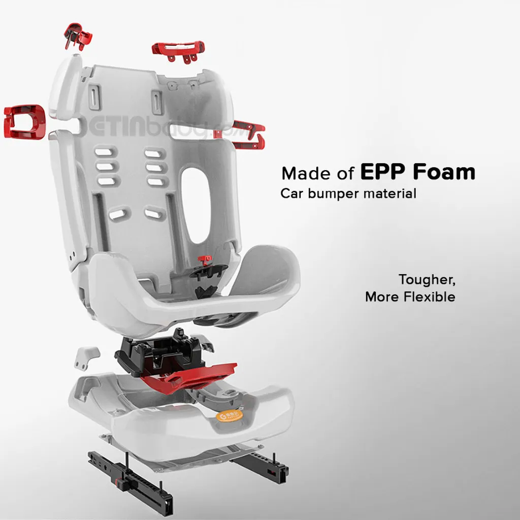 Support babies up to 36kg, includes enhanced safety features like side impact protection, an anti-rebound bar attached to the base, and EPS foam in the shell and head panel, which absorbs energy and protects the head and torso of the child from impact. Support weight: 36kg