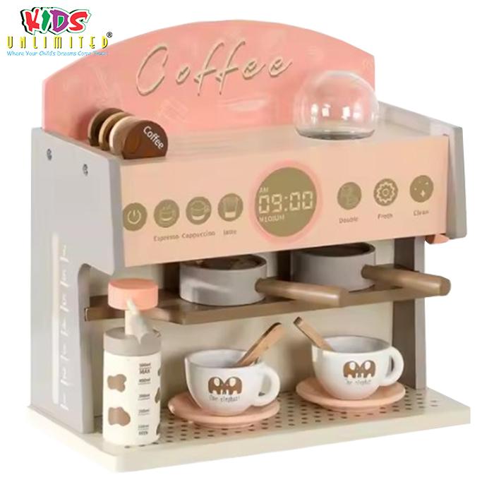 DIY Wooden Coffee Machine Toy Kids Role Pretend Play Coffee Wood House Toy Simulation Kitchen Toy Set For Toddler