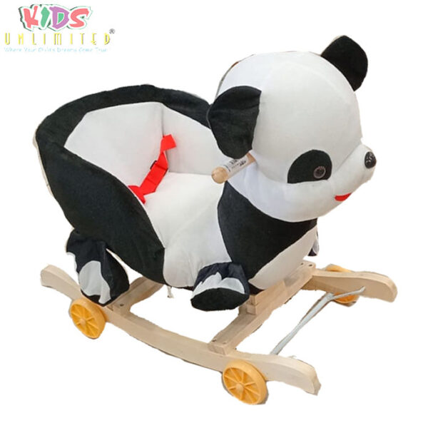 Panda design electric baby music stuffed plush wood rocking horse toy