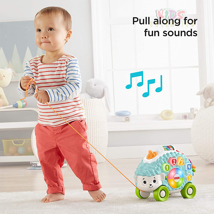 Friendly, interactive hedgehog pull toy with lights, music, and songs