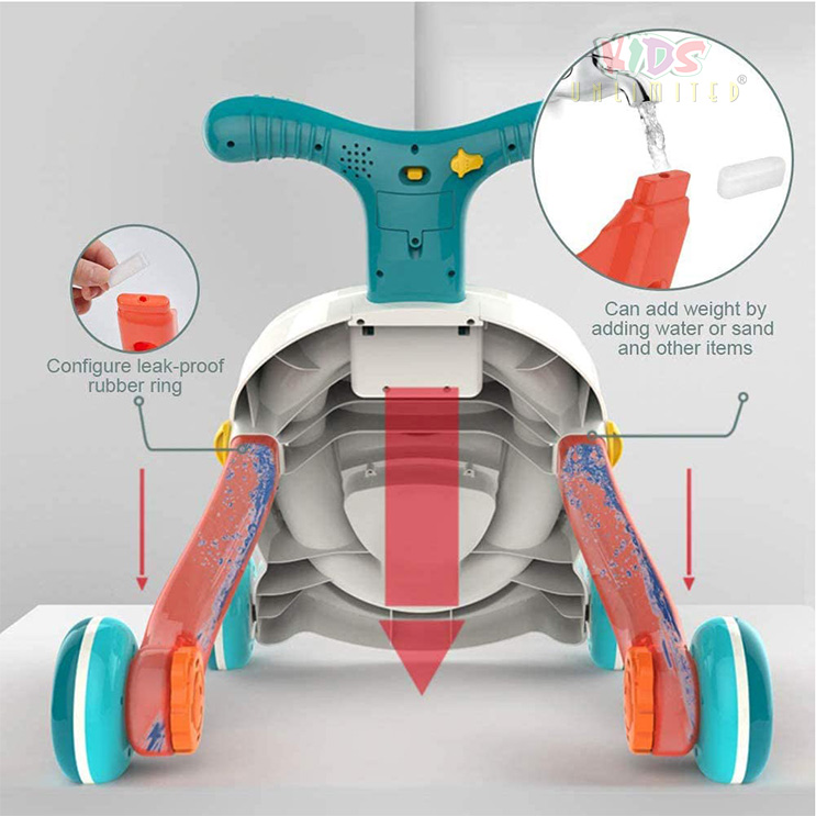 - Height Adjustable: The handle can be easily adjusted between two heights (47/50cm), which is convenient for toddler of different heights and ages to grasp. Rounded corner and smooth surface protect toddler from scratching. Weighted water tank design to prevent rollover.