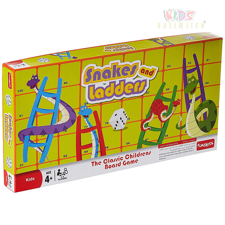 Let your kids enjoy fun-filled hours with the Funskool Snakes and Ladders board game. Your kids will love spending their leisure time engrossed in playing this popular game with their friends. Watch your children get thrilled with suspense as they roll the dice, anticipating or trying to save themselves from the venomous hold of the snake. You can also join your kids in this snakes and ladders board game and relive the memories of your childhood. Moreover, it has simple rules which can be easily understood by kids.