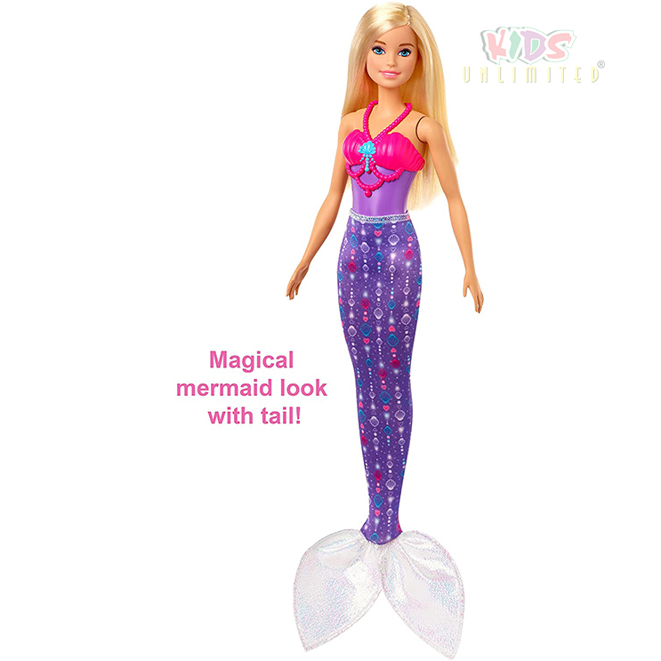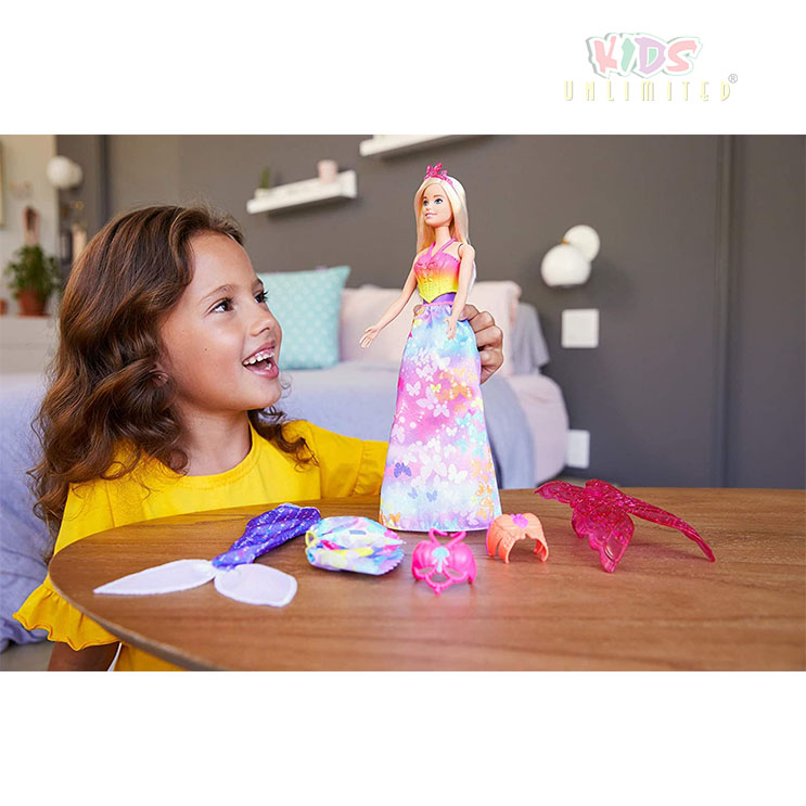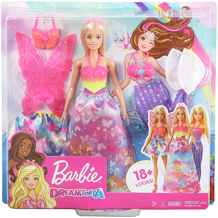 ?Let your dreams run, dive and fly with Barbie Dreamtopia Fairytale Dress-up doll sets that come with a Barbie doll and three different fantasy outfits — a mermaid, a fairy AND a princess!
