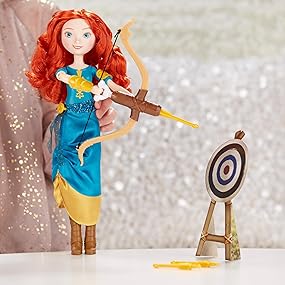 Aim For Big DreamsAdventurous, bold, and bow-clad, Merida is brave enough to dream big! Little dreamers will love playing out fearless and fun moments from Disney’s Brave, as well as imagining her own stories with Merida’s Adventure Bow. Help Merida load up her bow and release to see the dart fly in the air! With armor on her right and left arms, the Merida doll is dressed in gear for kids to act out Merida’s big dreams. |