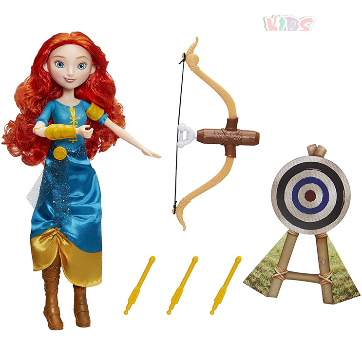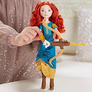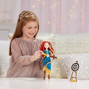 Aim For Big DreamsAdventurous, bold, and bow-clad, Merida is brave enough to dream big! Little dreamers will love playing out fearless and fun moments from Disney’s Brave, as well as imagining her own stories with Merida’s Adventure Bow. Help Merida load up her bow and release to see the dart fly in the air! With armor on her right and left arms, the Merida doll is dressed in gear for kids to act out Merida’s big dreams. |