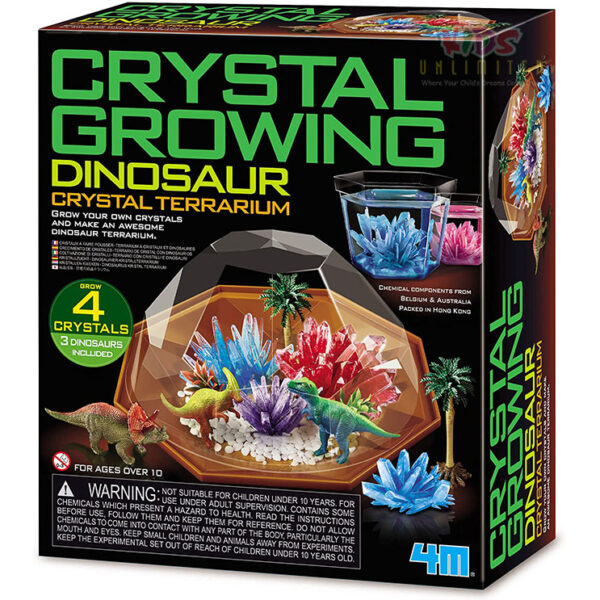 Kids and parents can grow the crystals and arrange the terrarium as a family activity