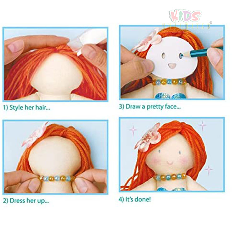 Give your child the means to create their very own adorable mermaid doll at home without the use needles or stitching.