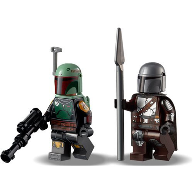 Includes 2 LEGO? minifigures: Boba Fett with a blaster and The Mandalorian with his blaster rifle and a beskar spear, plus a Carbonite brick to add to the creative play possibilities.