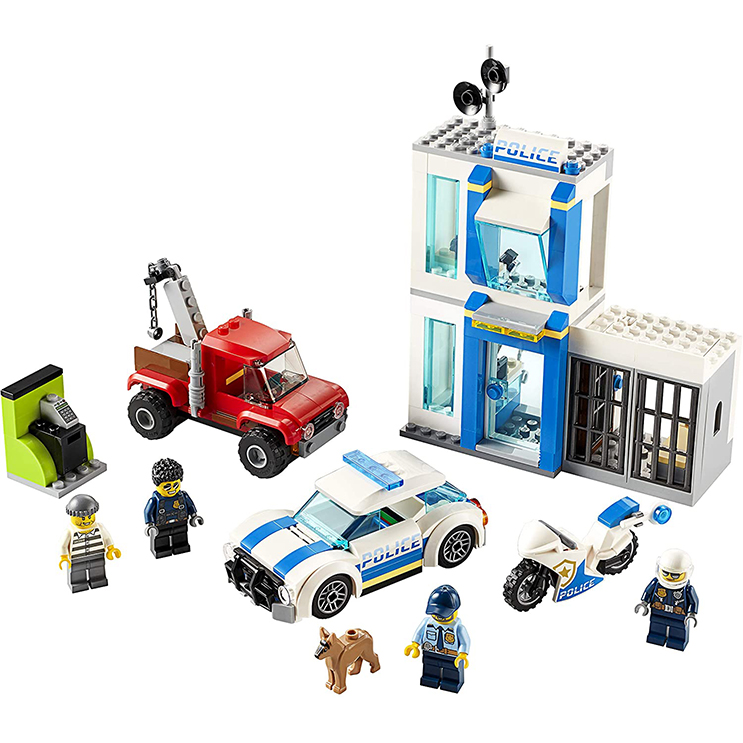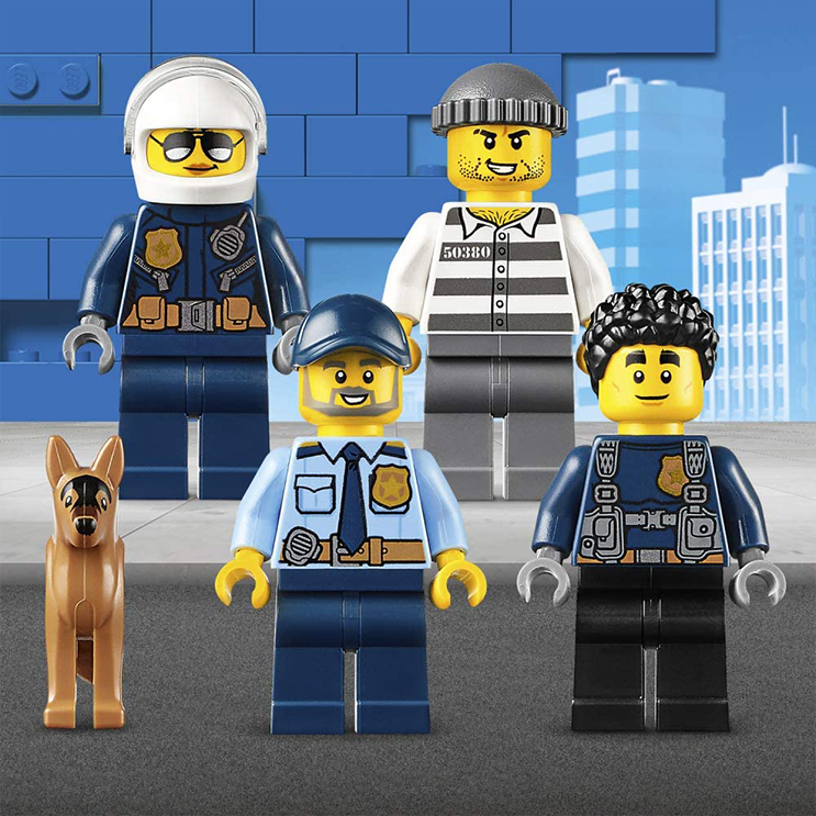 Includes 4 minifigures: duke detain, 2 LEGO city police officers and a criminal, plus police dog figure – everything kids need for criminal-catching adventures