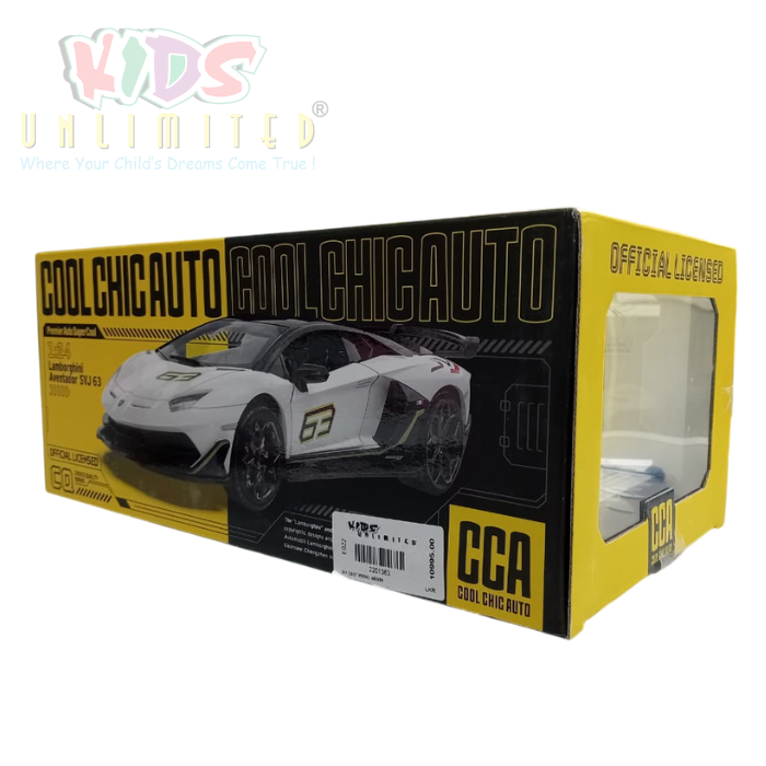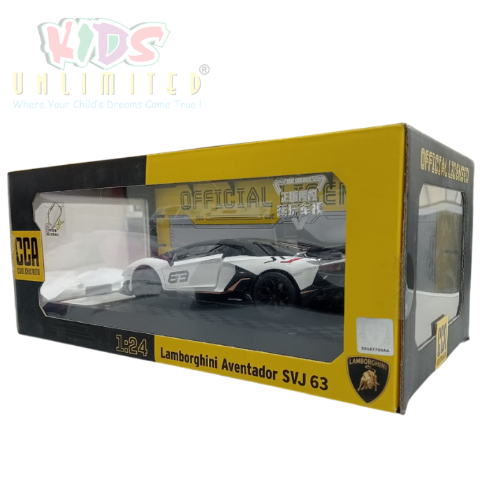 Own a miniature icon: The Official Licensed 1:24 CCA Lamborghini Aventador SVJ 63 diecast model. This highly-detailed replica captures the essence of the ultra-rare supercar, featuring openable doors, realistic lights, and sound effects for an engaging collector’s experience.