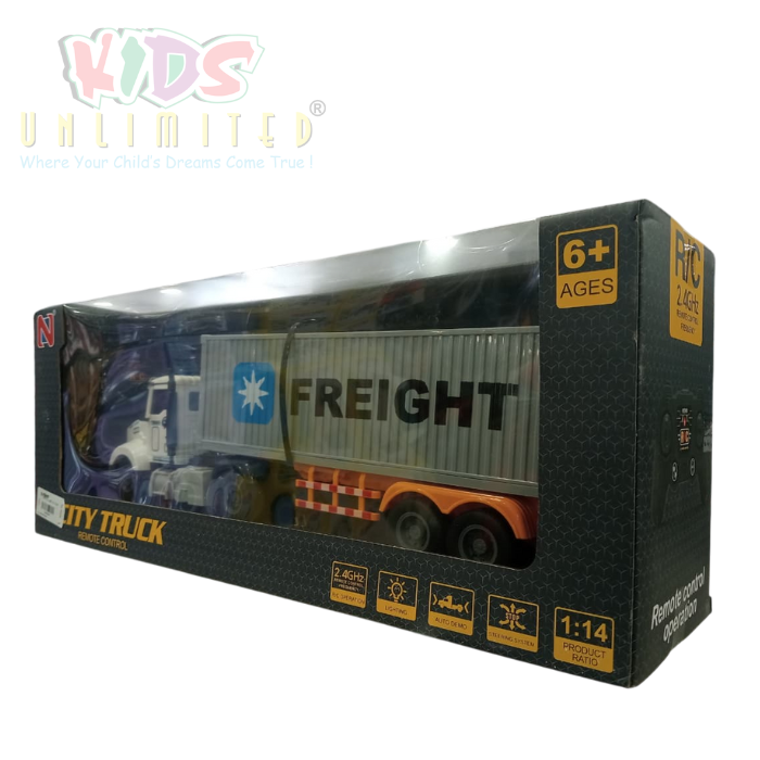 Experience the thrill of the open road with this realistic remote control freight truck. This detailed 1:14 scale model is perfect for kids aged 6 and up, offering an immersive and engaging play experience.Â