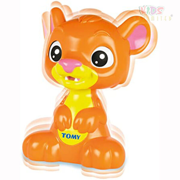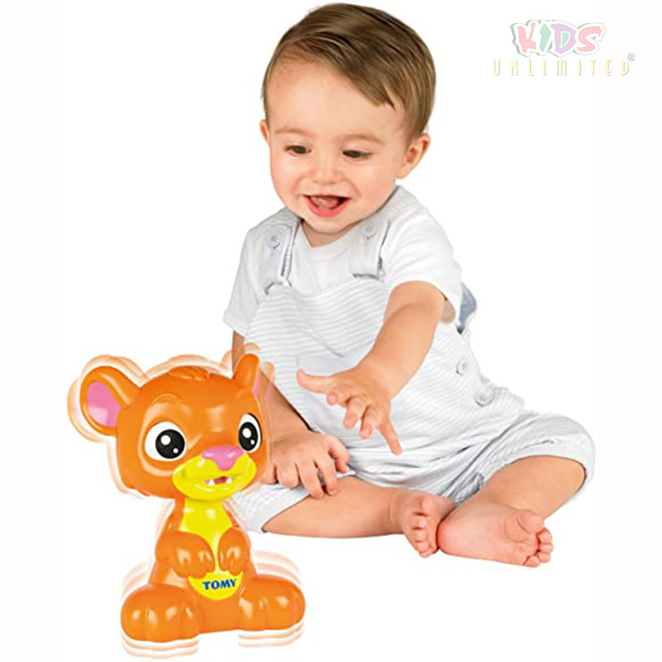 Push down on the lion cub’s head and he closes his eyes and giggles