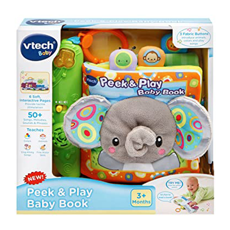 The Peek and Play Baby Book by VTech is a real page turner; 6 soft, interactive book pages introduce animals through bold pictures and fun interactive features