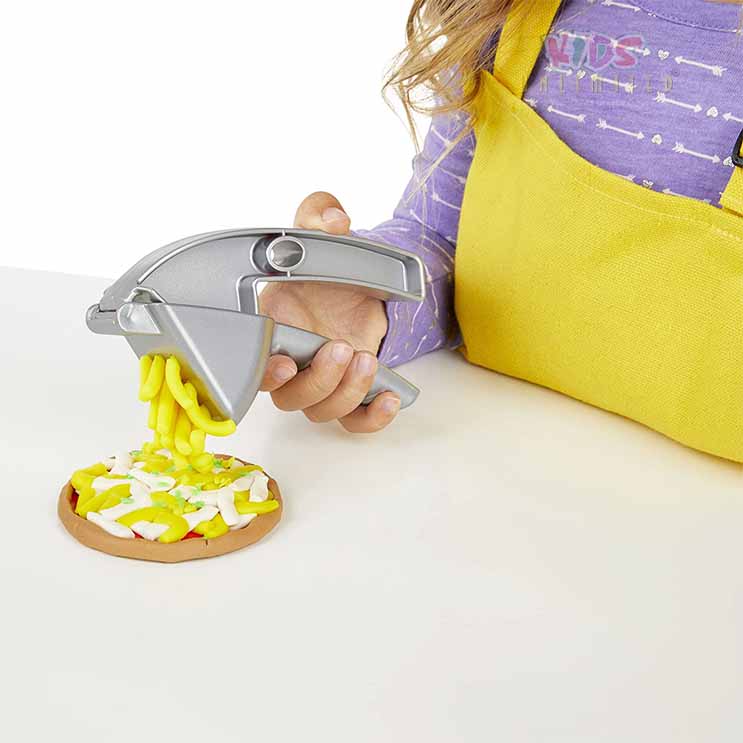 • 5 Play-Doh cans and 6 accessories – this Play-Doh toy is great for kids who love Modeling clay and cooking. It comes with 5 standard-size 2-ounce Play-Doh cans, plus a pizza paddle, cutter, and more!